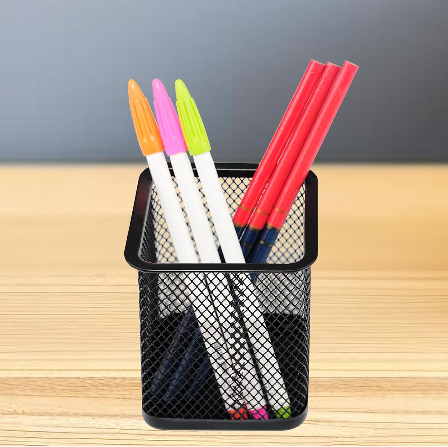 Constructed with durable wire mesh material, this pencil cup holder is sturdy and long-lasting, making it ideal for everyday use in the office or at home. Its open design allows for easy access to your pens, pencils, markers, and other writing instruments, keeping them within reach whenever you need them.